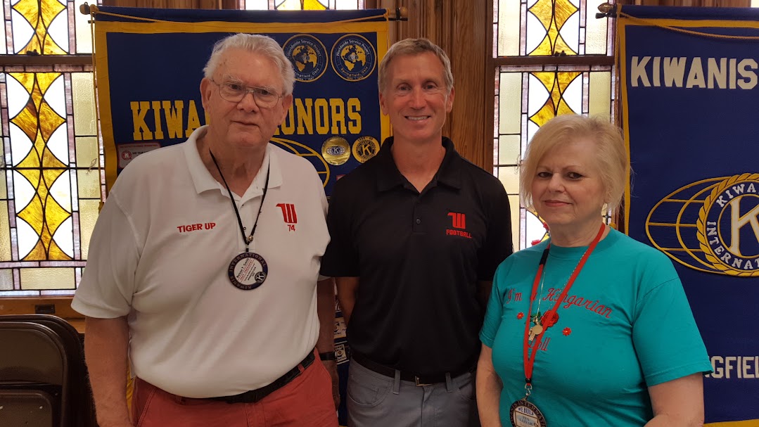 The Photograph above shows Kiwanian Nelson Ted Smith, Wittenberg Football Coach Jim Collins with Springfield Kiwanis Vice President Eva Lazear |